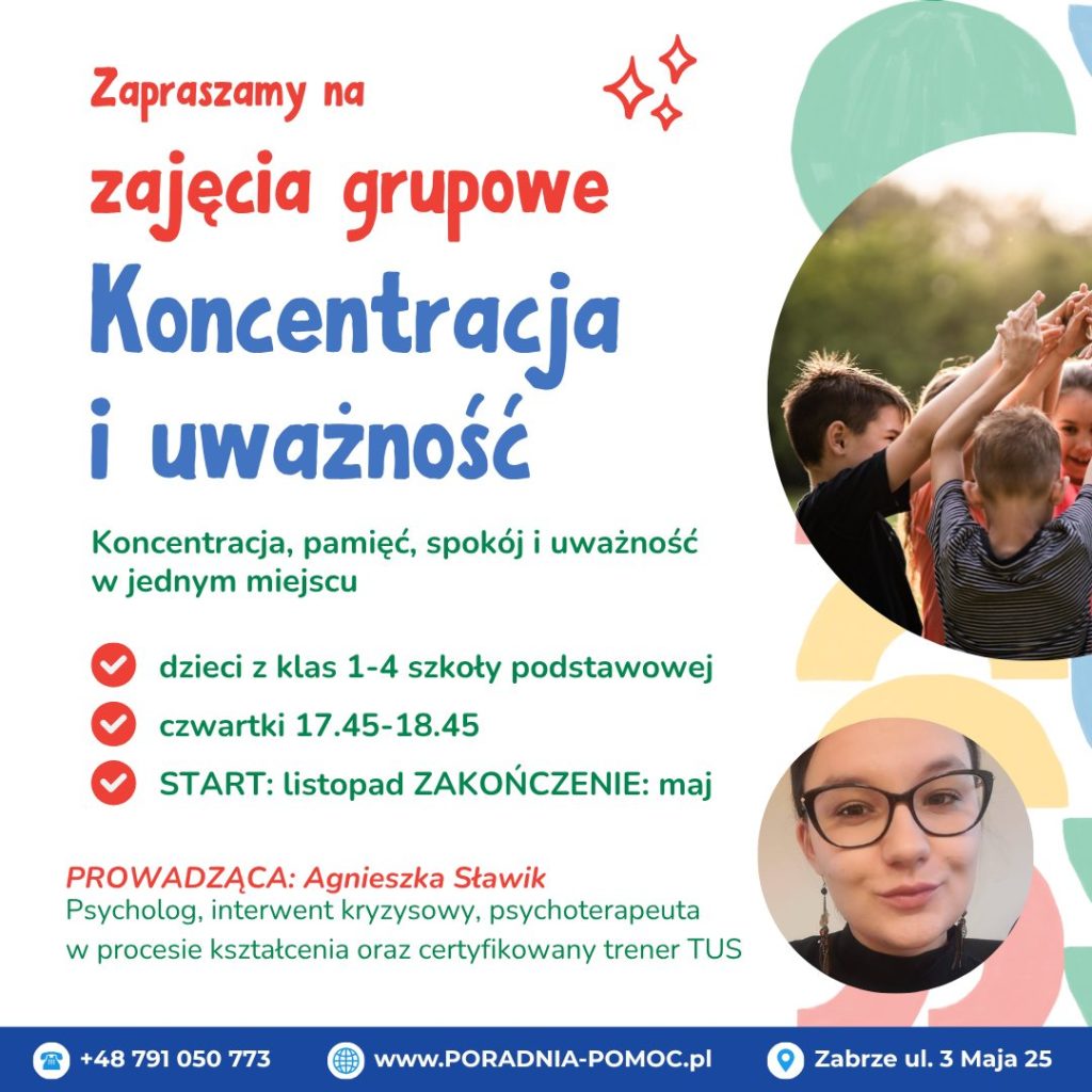 Zajęcia „Koncentracja i Uważność” to czas, w którym dzieci rozwijają koncentrację, pamięć i spostrzegawczość, a jednocześnie poznają techniki relaksacji i uważności.